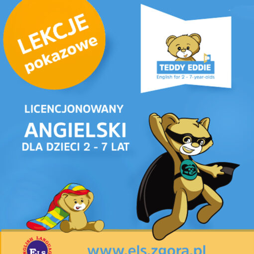 Opublikowano 16 września 2020 LEKCJE POKAZOWE TEDDY EDDIE ZAPRASZAMY na spotkanie z TEDDY EDDIE! LICENCJONOWANY ANGIELSKI DLA DZIECI 2 – 7 LAT INFORMACJE I ZAPISY: 68 325 44 01 els@els.zgora.pl